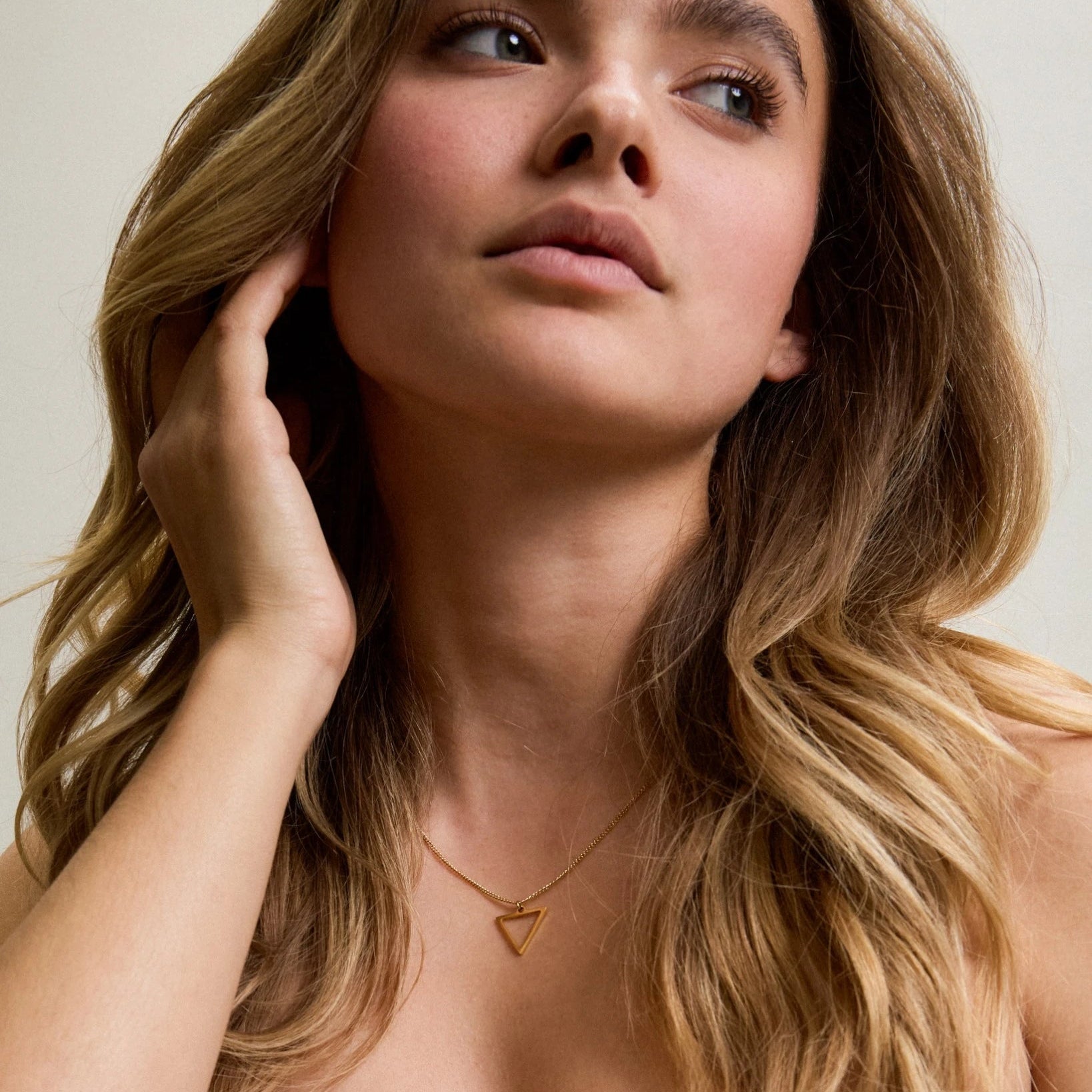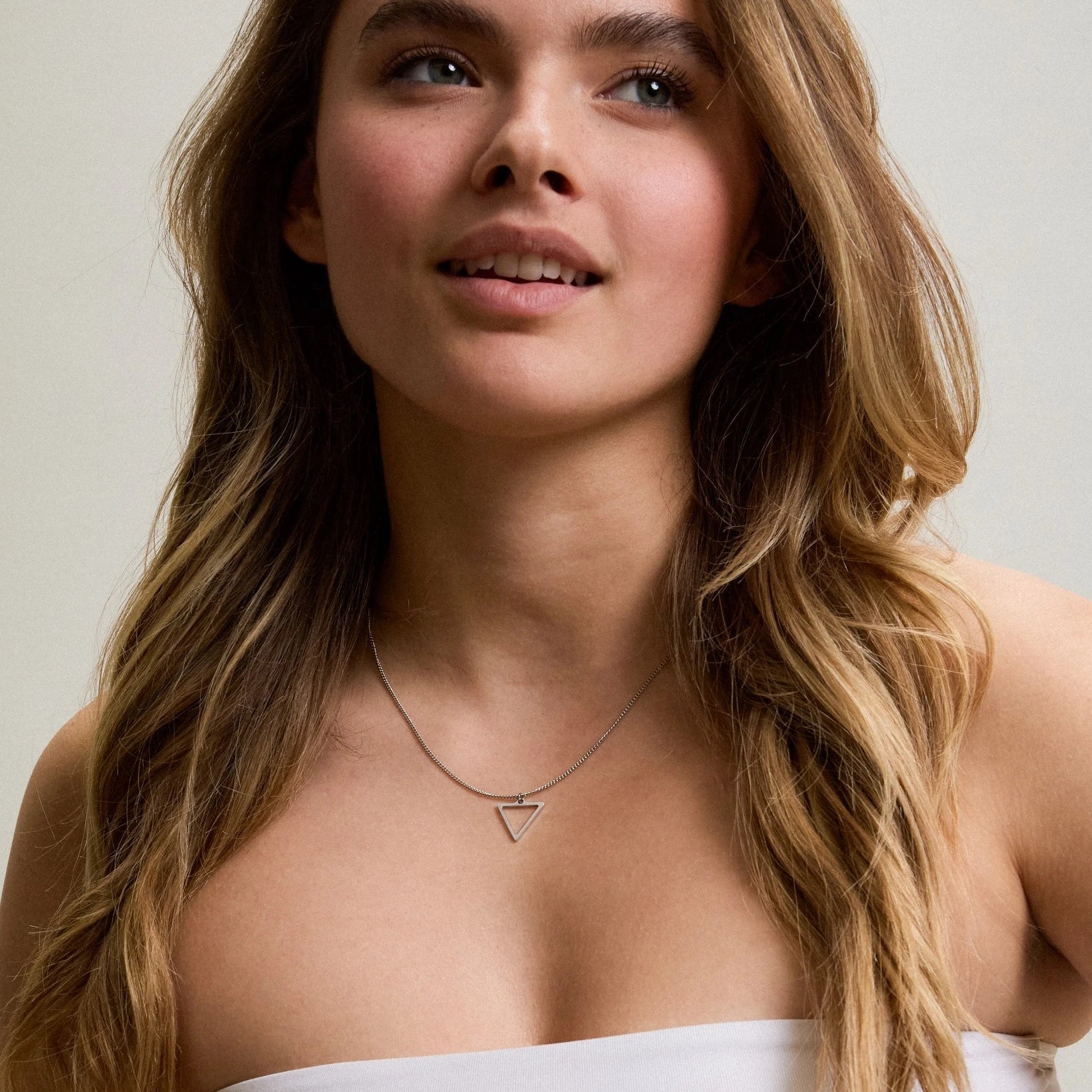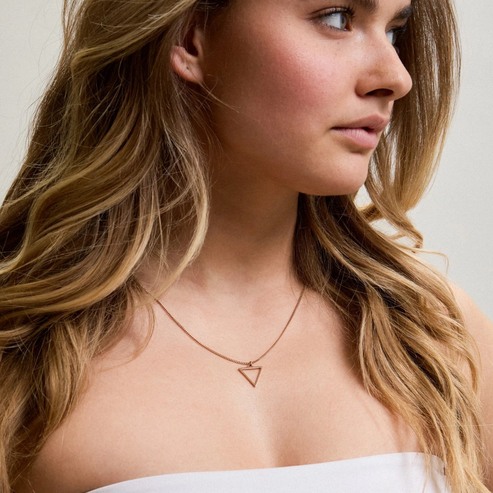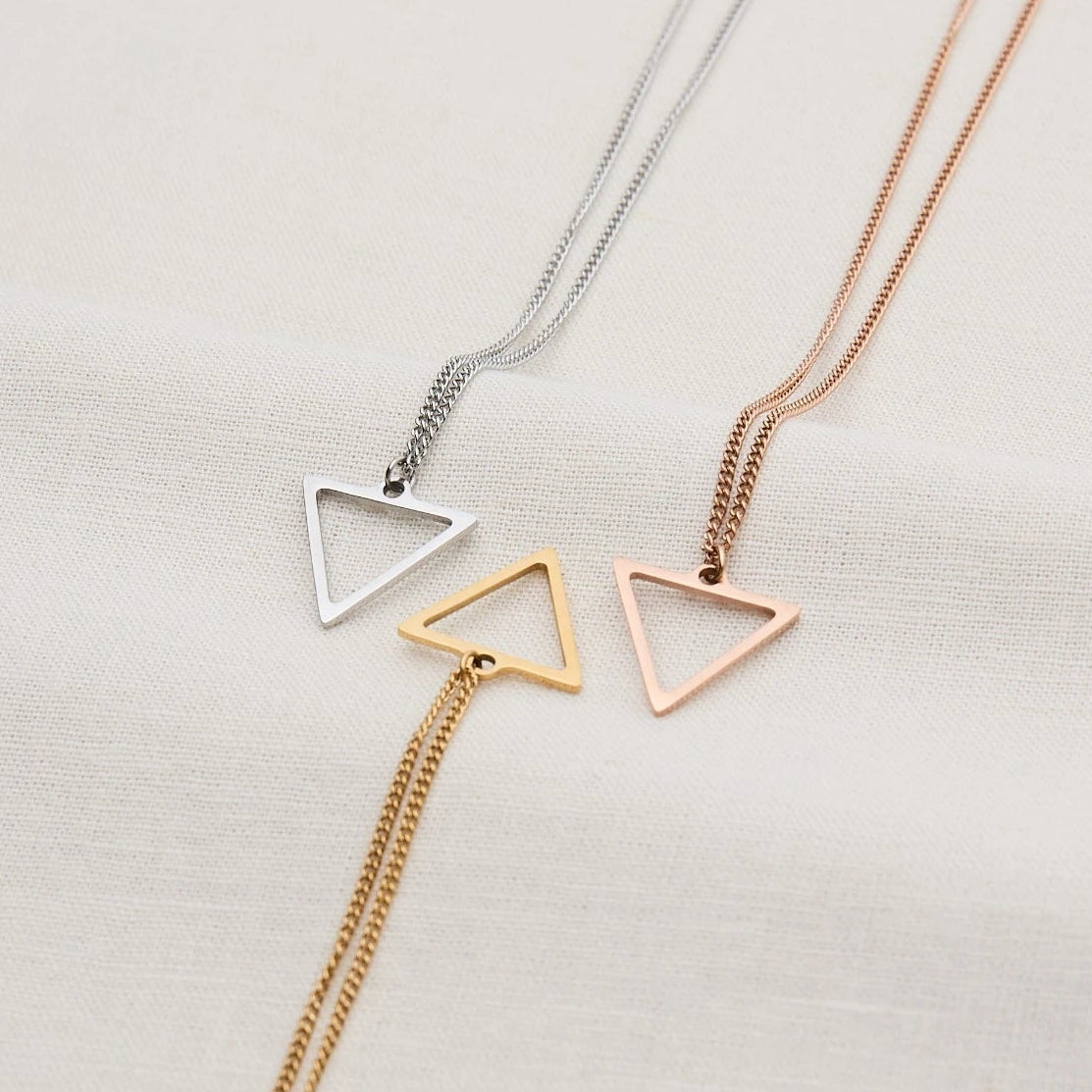 Die feine Halskette mit einem minimalistischen Dreieck Anhänger ist zu jedem Outfit ein stilvolles Schmuck Accessoire.
