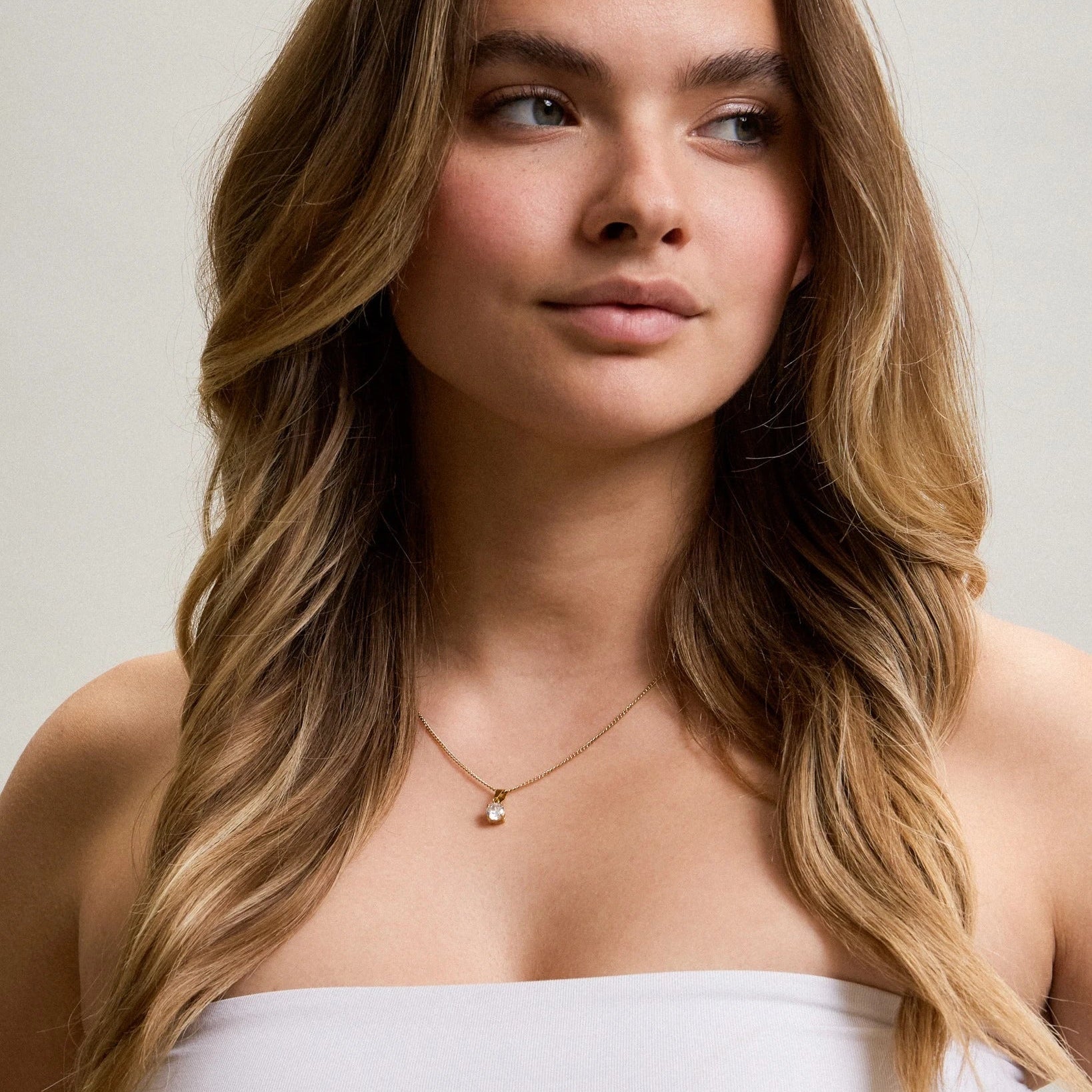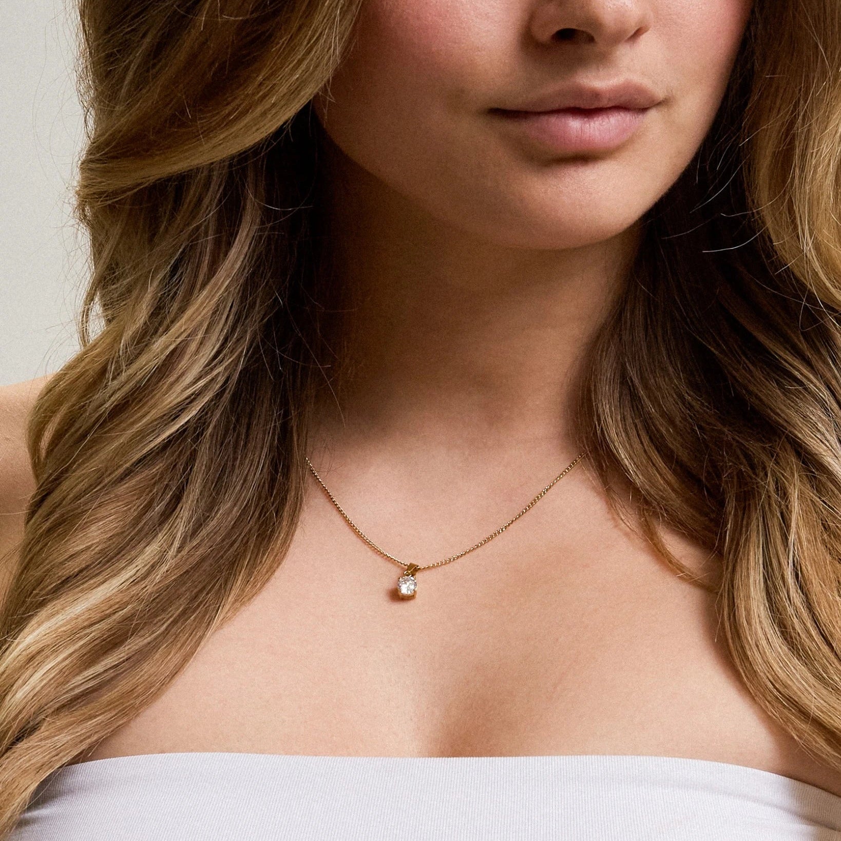 Die feine Halskette mit einem Basic Solitär CZ Diamant Anhänger (Kissenschliff) ist zu jedem Outfit ein stilvolles Schmuck Accessoire.