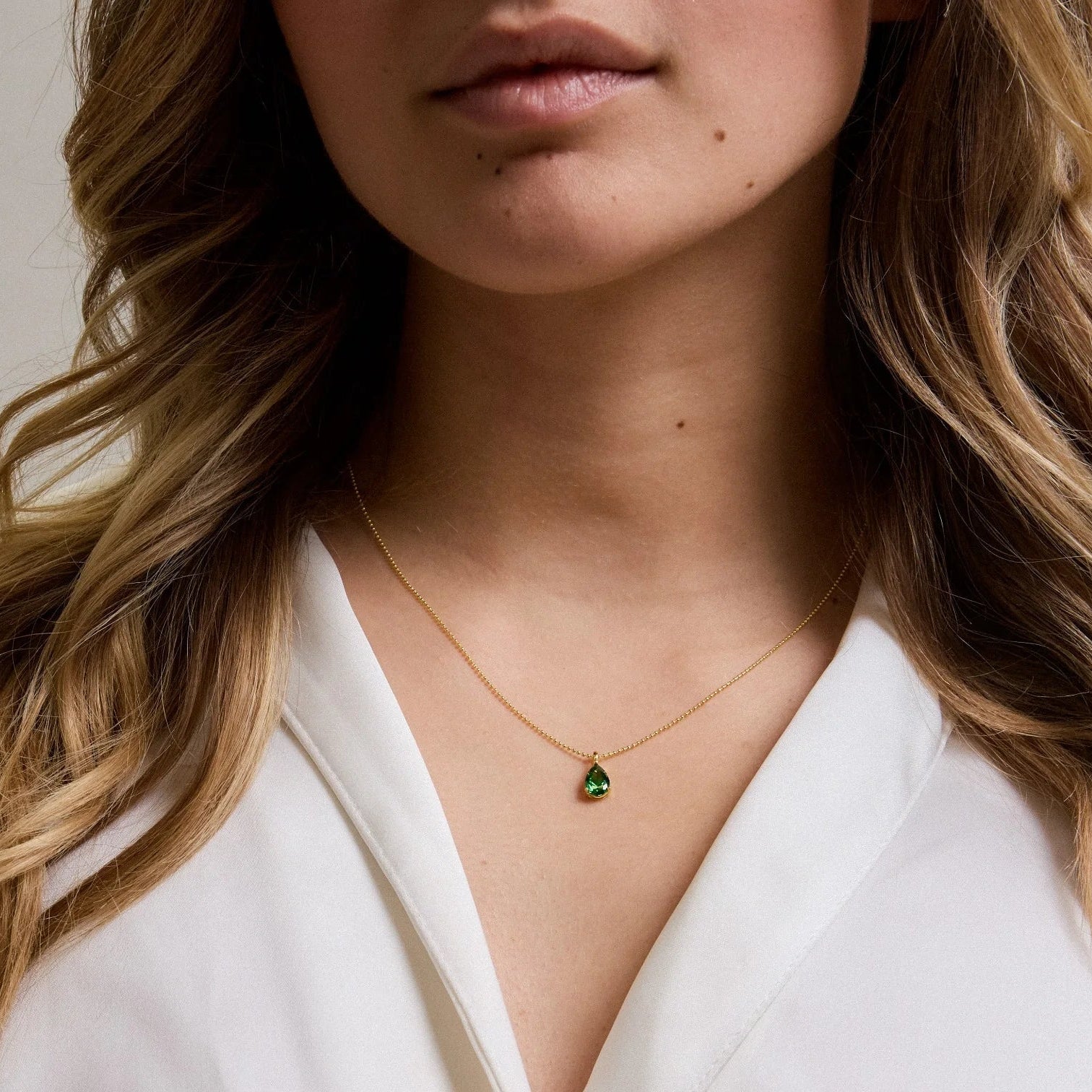 Der waldgrüne Solitär-Kristall Anhänger aus Zirkonia symbolisiert Fülle und vermittelt Sicherheit.