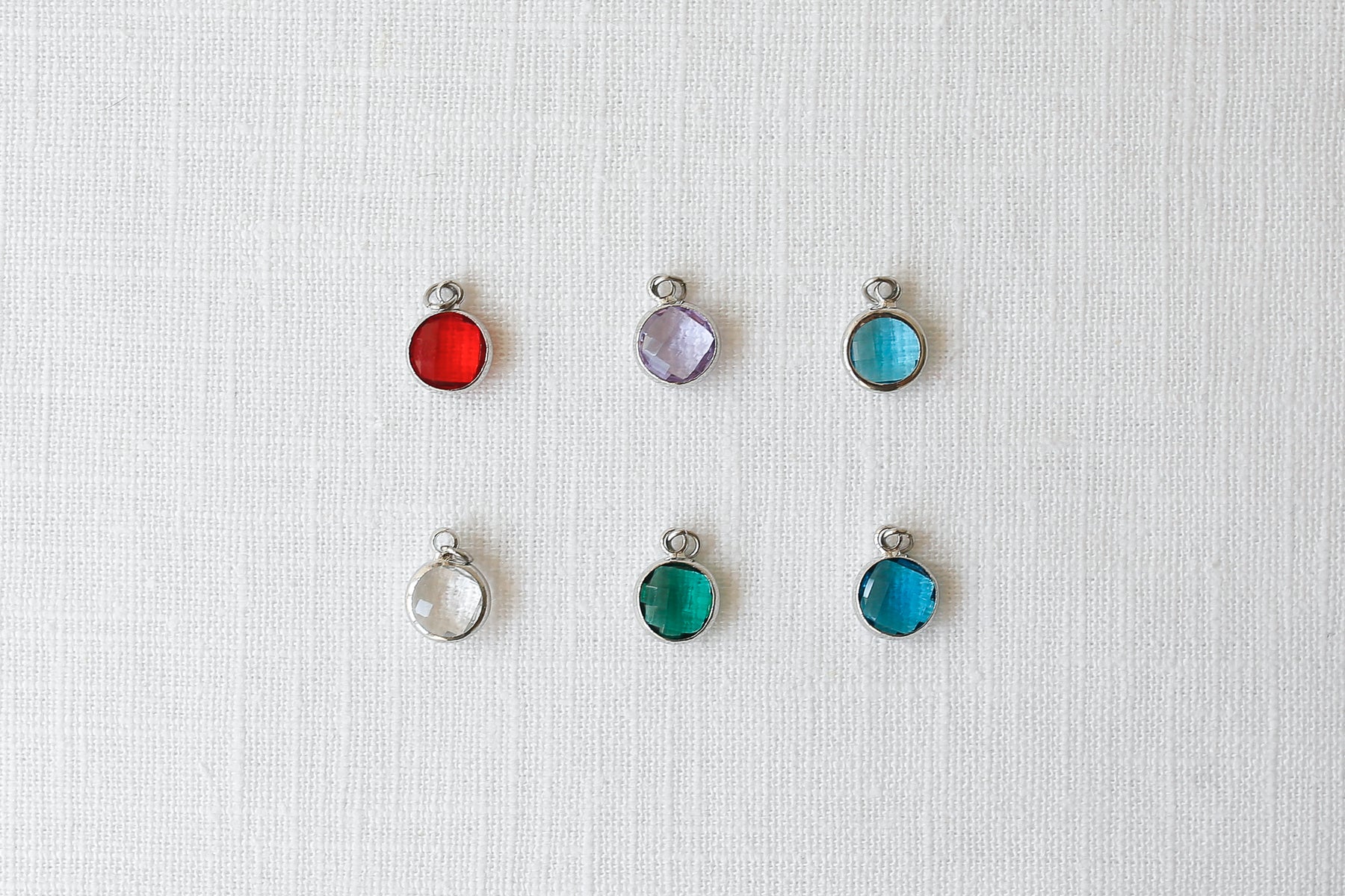 Verschiedene Farb Variationen von Edelstein Anhängern auf Leinen Stoff